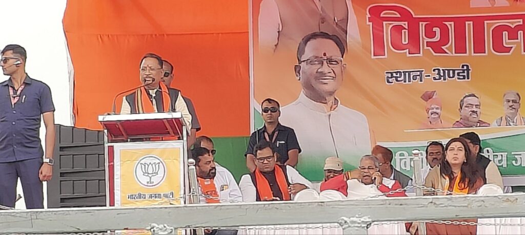 मरवाही विधानसभा के ग्राम अंडी में आयोजित आमसभा में गरजे मुख्यमंत्री विष्णु देव साय, कार्यकर्ताओं में भरा जोश