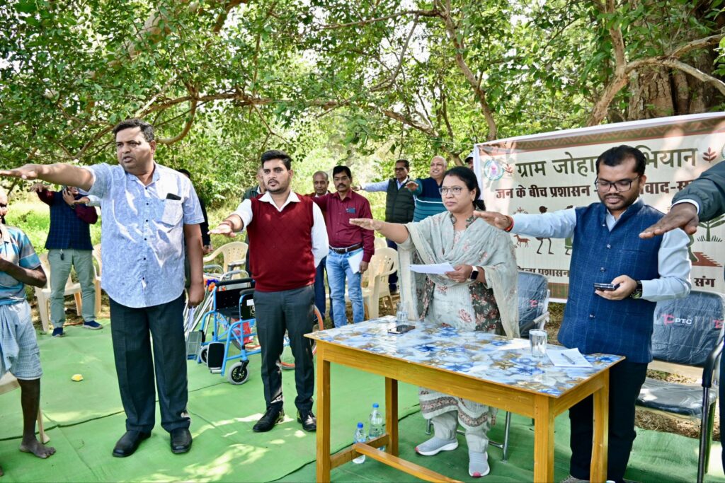 कलेक्टर ने कहा कि महतारी वंदन की राशि का उपयोग सुकन्या समृद्धि योजना में करें, यह बहुत फायदे का योजना है। इस योजना के तहत खाता खुलवाकर हर महीने ढाई सौ रूपये जमा करें जो कन्या के शादी-ब्याह में काम आयेगा। उन्होंने सभी अधिकारियों-कर्मचारियों एवं ग्रामीणों को नशा मुक्त भारत अभियान के अंतर्गत एकजुट होकर समुदाय, परिवार, मित्र एवं स्वयं को नशा मुक्त रहने शपथ दिलाई। इसके साथ ही स्वच्छता और बाल विवाह नहीं करने की भी शपथ दिलाइ गई। जन चौपाल में खाद्य, महिला एवं बाल विकास, स्वास्थ्य, कृषि, उद्यानिकी, पशुधन, वन, समाज कल्याण, आयुष, श्रम, बिजली, आदिवासी विकास, राजस्व और पंचायत विभाग के जिला अधिकारियों ने विभागीय योजनाओं के बारे में बताया।