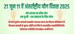 प्रशासन के निर्देशानुसार जिले के सभी शासकीय कार्यालयों, विद्यालयों एवं सार्वजनिक स्थलों पर प्रोटोकॉल के तहत सामूहिक योगाभ्यास कराया जाएगा। यह आयोजन ग्यारहवें अंतरराष्ट्रीय योग दिवस का हिस्सा होगा,
