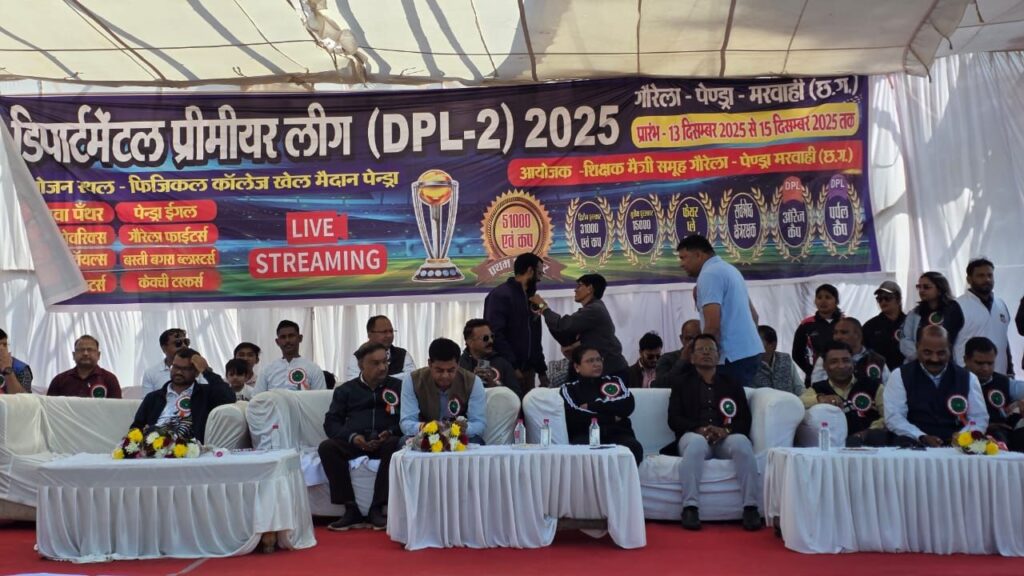 शिक्षक मैत्री समूह, जिला गौरेला–पेंड्रा–मरवाही द्वारा आईपीएल की तर्ज पर आयोजित डीपीएल (डिपार्टमेंटल प्रीमियर लीग) क्रिकेट टूर्नामेंट सीजन–2 का शनिवार को फिजिकल कॉलेज खेल मैदान, पेंड्रा में भव्य उद्घाटन हुआ। टूर्नामेंट में जिले के विभिन्न विभागों के अधिकारी-कर्मचारी अपनी-अपनी टीमों के माध्यम से मैदान में उतर रहे हैं।