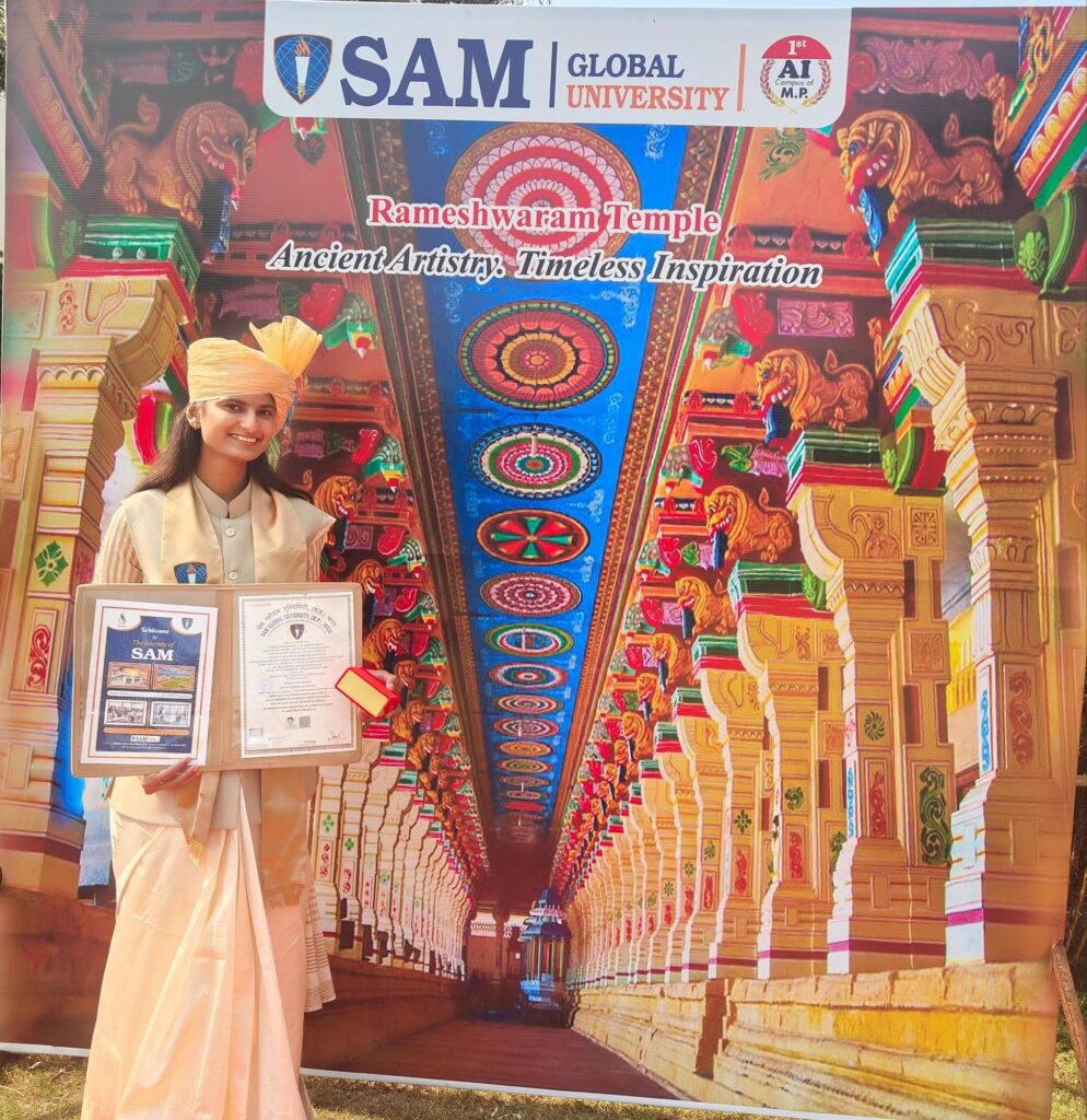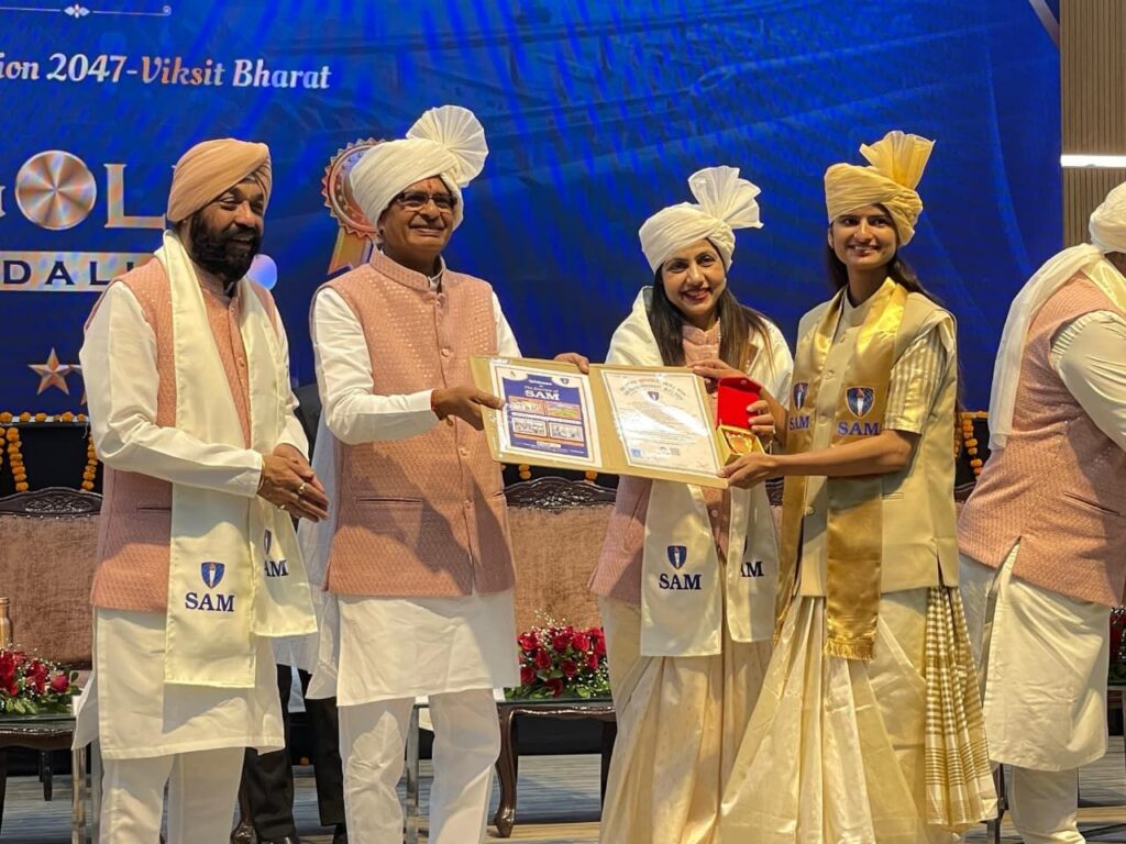 सैम ग्लोबल यूनिवर्सिटी भोपाल में एम जे एम सी में गोल्ड मेडलिस्ट बनी सृष्टि मिश्रा,केंद्रीय मंत्री शिवराज सिंह चौहान ने किया सम्मानित,जिले का नाम किया रोशन