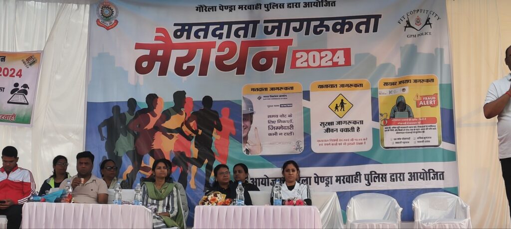 गौरेला पेंड्रा मरवाही जिले में मतदाता जागरूकता अभियान के शुरुआत की सफलता इसी से मानी जा रही है कि 5 किलोमीटर लंबी मैराथन दौड़ में जिले के 560 प्रतिभागियों जिसमें युवा खिलाड़ी कर्मचारी अधिकारी नागरिकों ने बढ़-चढ़कर हिस्सा लिया तथा जिला प्रशासन एवं पुलिस प्रशासन के संयुक्त तत्वाधान में आयोजित इस मतदाता जागरूकता अभियान को सफल बनाया। इस मैराथन की प्रमुख बात यह रही कि जिले की युवा महिला पुलिस अधीक्षक श्रीमती भावना गुप्ता ने स्वयं 5 किलोमीटर की मैराथन में हिस्सा लेकर महिला प्रतिभागियों के बीच प्रथम स्थान प्राप्त किया जो अन्य प्रतिभागियों के लिए प्रेरणा का विषय बना। इसके अलावा मतदाता जागरूकता के लिए आयोजित कार्यक्रम में जिले की दो महिला अधिकारियों की जोड़ी कलेक्टर लीना कमलेश मंडावी एवं पुलिस अधीक्षक भावना गुप्ता ने मंच पर खिलाड़ियों द्वारा प्रस्तुत जुंबा डांस में एक साथ थिरक कर मतदाता जागरूकता अभियान कार्यक्रम में जान भर दी।