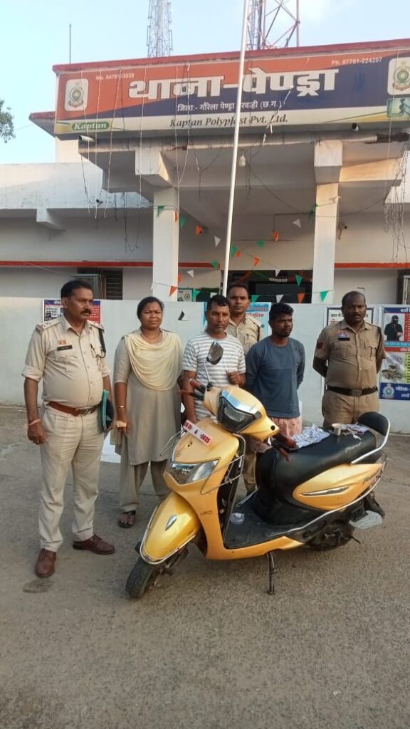 मुखबिर की सूचना पर 7 मई को दो संदिग्ध — रोहित कोल और कृष्णकुमार सैनी, दोनों निवासी पेंड्रा — को बंधी-बचरवार मार्ग पर पकड़ा गया। पूछताछ में दोनों ने तीसरे साथी संतोष चंद्रा के साथ चोरी की घटना को अंजाम देने की बात कबूल की। बरामद सामग्रियों में पीली स्कूटी (CG31A3025), चांदी के बर्तन, सोने-चांदी के आभूषण और ₹20,000 नगद शामिल हैं।