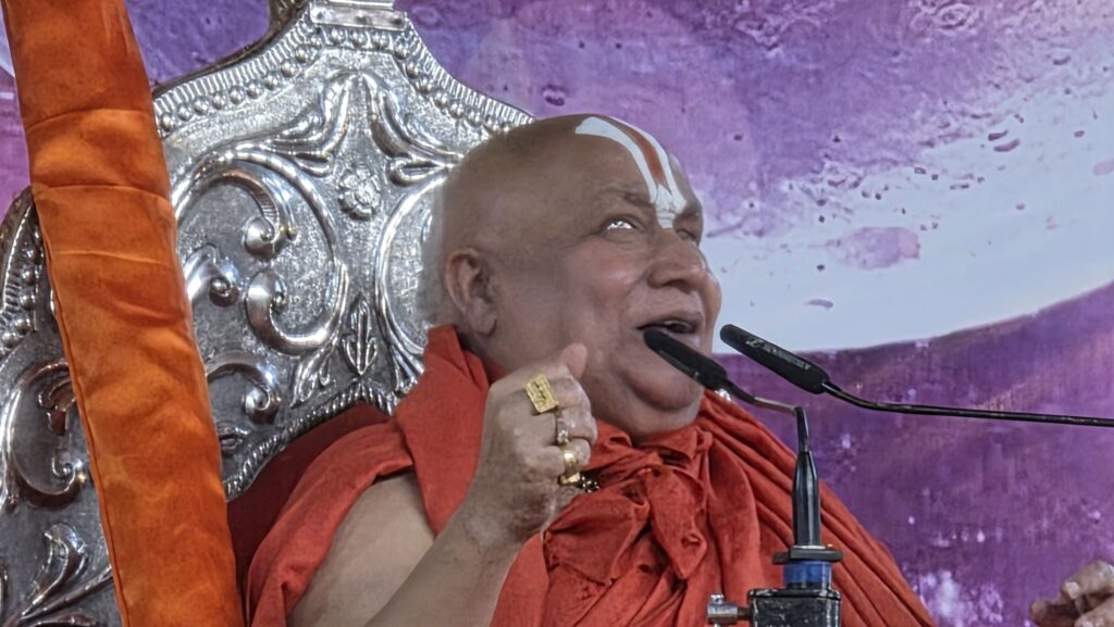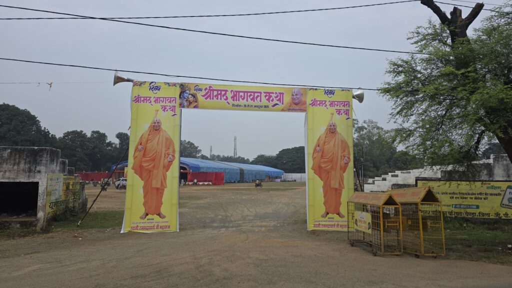 श्रीमद् भागवत कथा ज्ञान यज्ञ के पहले दिन 25 अक्टूबर को जगतगुरु श्री रामभद्राचार्य ने श्रद्धालु जनों को संबोधित करते हुए श्रीमद् भागवत कथा का महत्व बताया। कथा के दौरान श्री रामभद्राचार्य ने कहा कि कोई व्यक्ति कितना भी विद्वान हो जाए चरित्र के बगैर उसकी विद्वता बेकार है।