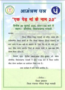 जिले को हरित, स्वच्छ और पर्यावरणीय दृष्टि से समृद्ध बनाने की दिशा में जिला प्रशासन द्वारा एक बड़ी पहल की जा रही है। “एक पेड़ मां के नाम 2.0” अभियान के अंतर्गत जिले के समस्त ग्रामों में 100-100 पौधों का वृहद स्तर पर रोपण किया जाएगा।